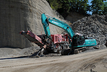 Unsere Baumaschinen reichen vom Pneulader über Bagger bis hin zu Siebanlagen. Hier sind einige davon.